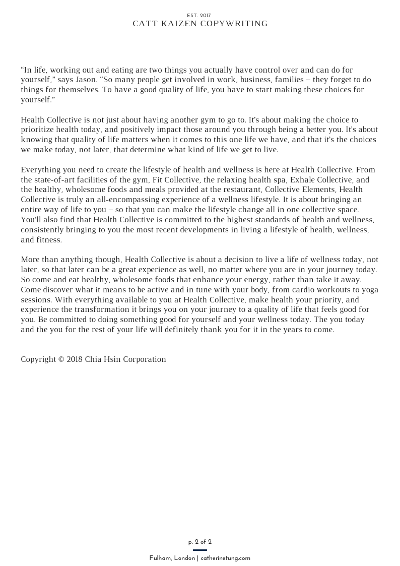 Sample Copywriting Works
