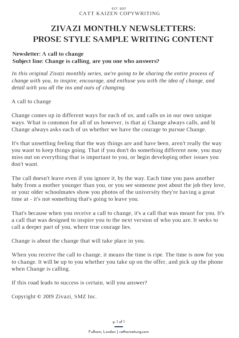 Zivazi Change Series, Monthly Newsletter – Prose Writing Sample